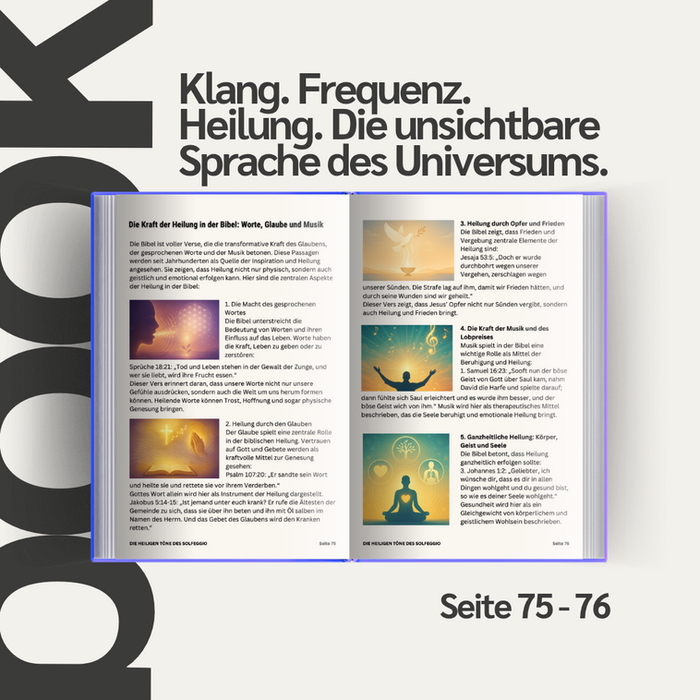 ✅ Du lernst alles über die 7 Solfeggio-Frequenzen (396–963 Hz), Schumann-Resonanz, Cymatherapie, Chakren, OM, Klangheilung, Bibelverse u. v. m. – wissenschaftlich fundiert und spirituell tief.
